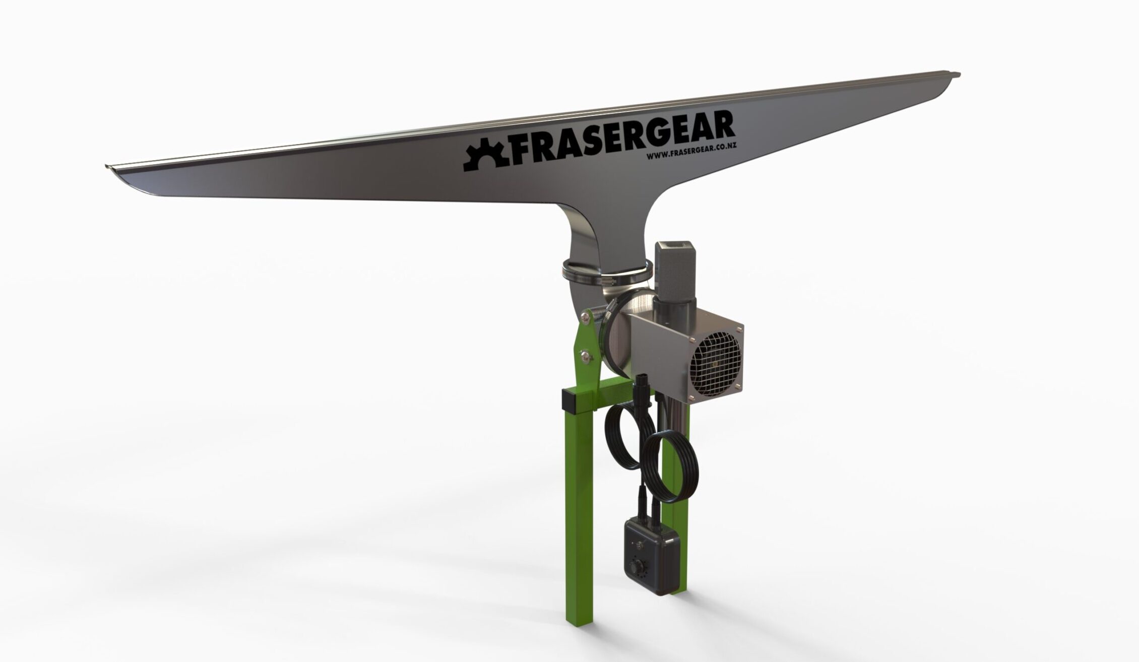 The Fraser Gear Pollen Applicator is a highly efficient pollen delivery system for dry artificial pollination of kiwifruit flowers. Simply mount the Applicator on your quad bike, side by side or tractor, load the pollen, and drive beneath the kiwifruit vine canopy using the applicator to blow pollen upwards onto flowers for artificial pollination.